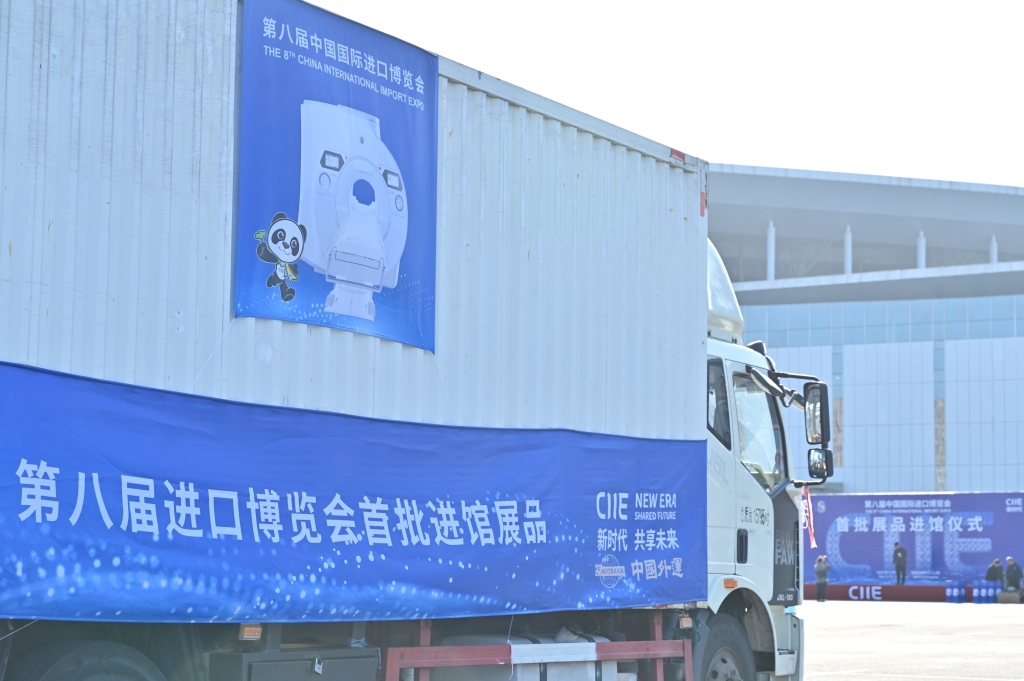 10月23日,在第八屆進博會開幕倒計時12天之際,首批展品進館儀式于國家會展中心(上海)舉行。本文圖片均為 澎湃新聞記者 張呈君 攝