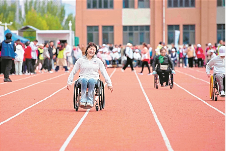 賽事設(shè)有10個特色項(xiàng)目,既有盲人競走接力、輪椅接力等團(tuán)體項(xiàng)目,也有定點(diǎn)投籃、盲人套圈等個人項(xiàng)目。賽場上,志愿者全程陪伴協(xié)助,在部分項(xiàng)目中還與運(yùn)動員并肩作戰(zhàn)?!耙郧翱傆X得自己和別人有差異,今天在賽場上,我體會到了平等和尊重,和大家一起拼搏的感覺太棒了。這不僅是一場比賽,更是我們走出家門、融入社會的平臺,非常感謝主辦方給予我們這樣的機(jī)會。”來自脊髓損傷者希望之家代表隊(duì)的參賽運(yùn)動員常昆說道。