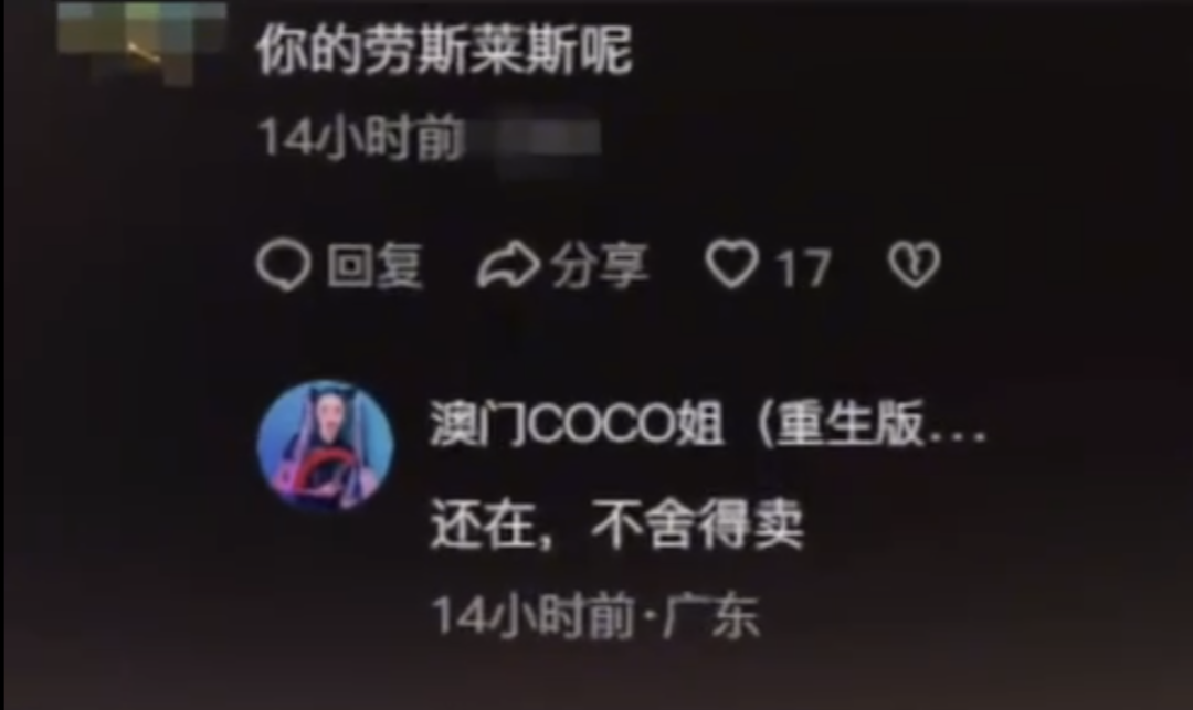 而澳門Coco姐仍堅持拍視頻,哭訴“身體出問題”“不能直播”??赡禽v粉色勞斯萊斯依舊停在鏡頭外的車庫里,讓人懷疑這場“破產(chǎn)危機(jī)”的真實性。