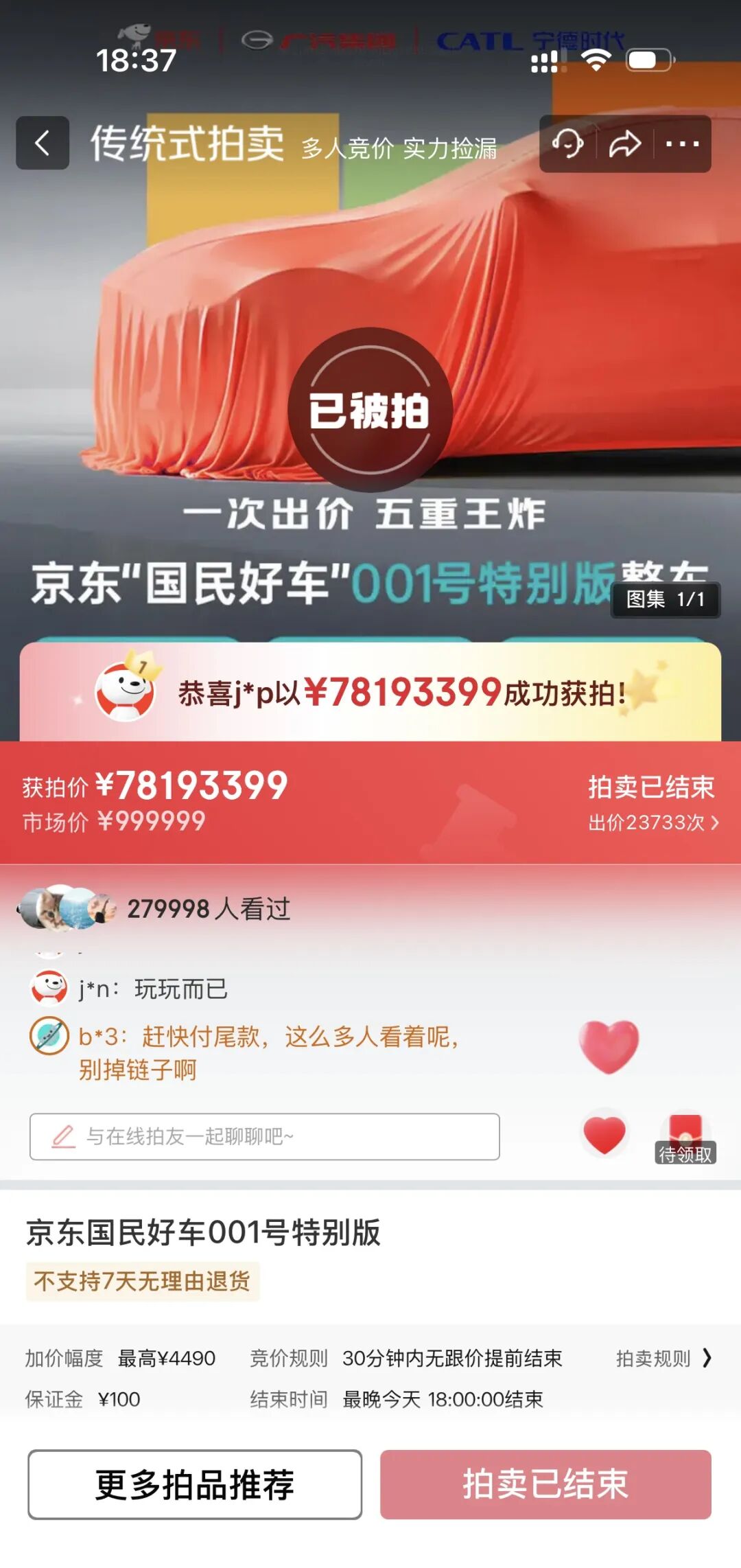 京東“國民好車”拍賣,神秘買家7819萬拿下