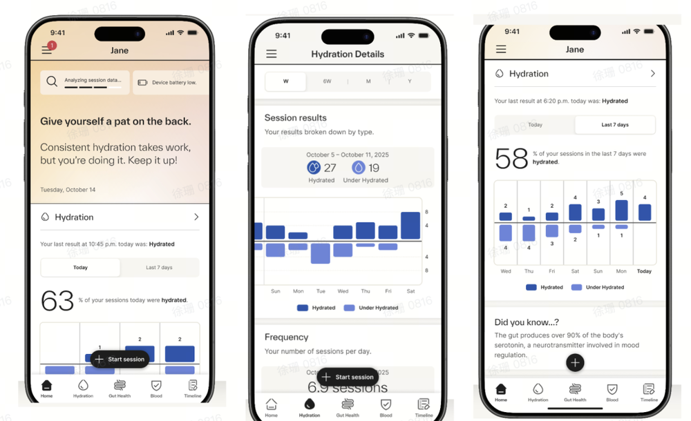 收集足夠數(shù)據(jù)后,Dekoda通過特殊訓練的算法權(quán)衡尿液濃度等指標,得出一個分數(shù),表明用戶體內(nèi)的水分狀況。