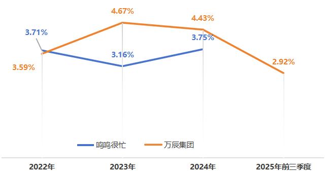 2024年,萬辰集團存貨周轉天數為17.93天,鳴鳴很忙為11.6天。今年三季度,萬辰升至18.99天,這表明萬辰集團運營和管理效率弱于鳴鳴很忙。