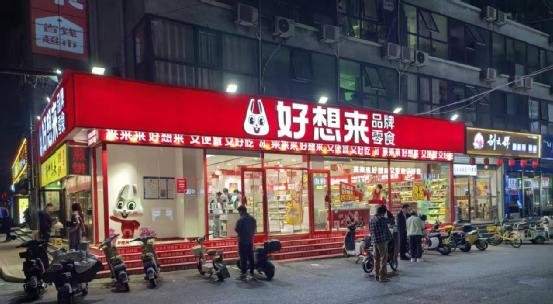 對消費者來說,量販零食常打著“省錢”旗號,將部分大包裝產品“拆開賣,按斤稱”。線下門店以大紅色或亮黃色裝修吸引顧客。在北方市場,好想來、趙一鳴零食等品牌門店通常從8點營業(yè)至23點,甚至24小時營業(yè)。