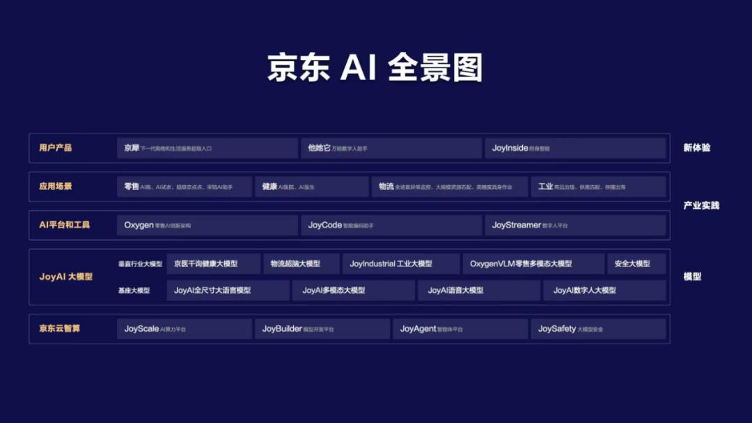 在之前的JDDiscovery - 2025京東全球科技探索者大會(huì)上,京東發(fā)布AI全景圖,展示其人工智能領(lǐng)域的整體戰(zhàn)略布局,并宣布未來(lái)三年持續(xù)加大投入,推動(dòng)構(gòu)建萬(wàn)億規(guī)模的人工智能生態(tài)。