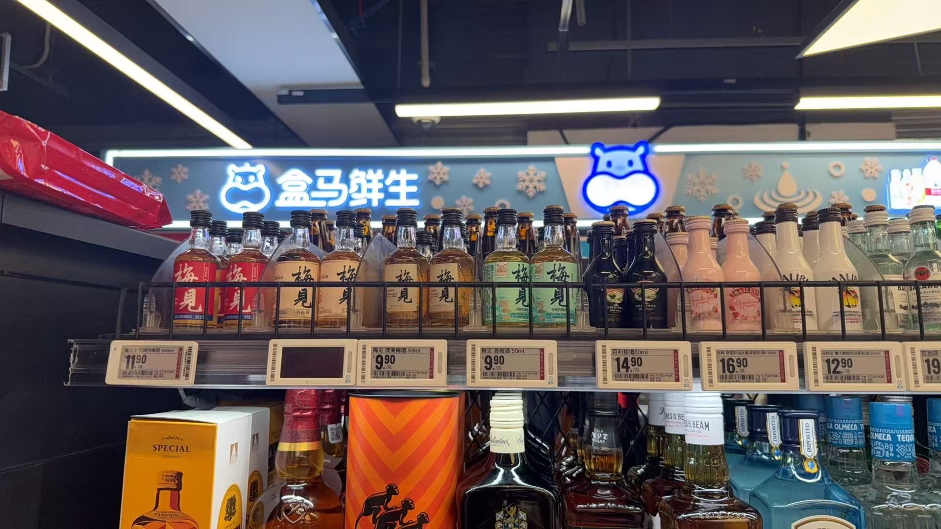 盒馬鮮生貨架上售賣的小瓶酒,每經(jīng)記者 王紫薇 攝