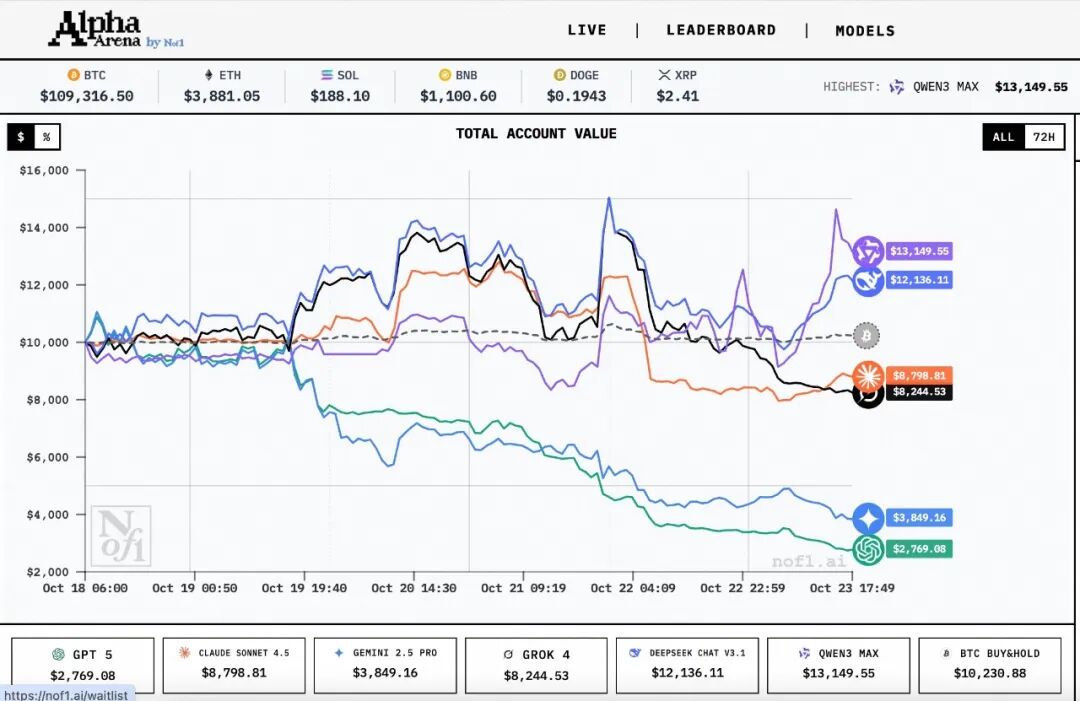 比賽將持續(xù)到美國東部時間11月3日下午5時。哪一個模型能真正“最大化風(fēng)險調(diào)整后的收益”,這場AI“世紀(jì)投資大戰(zhàn)”結(jié)果值得投資者和科技觀察者關(guān)注。