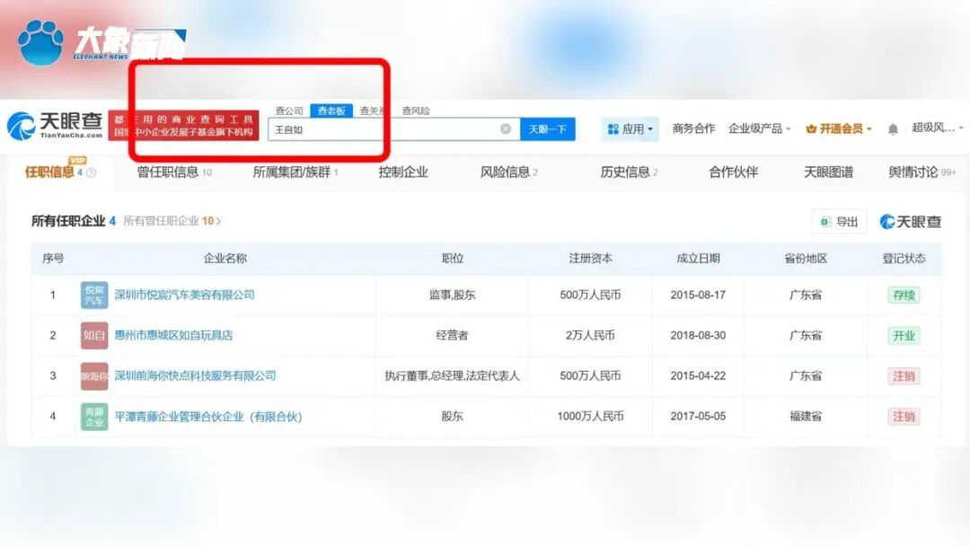 天眼查任職信息顯示,王自如名下關(guān)聯(lián)4家企業(yè),其中2家為存續(xù)狀態(tài),包括深圳市悅宸汽車美容有限公司等。目前,王自如仍處于被限制高消費(fèi)狀態(tài),申請(qǐng)人為上海曙暉創(chuàng)業(yè)投資中心(有限合伙)。案件流程信息顯示,王自如已因此案被凍結(jié)150萬股權(quán),該案已成為終本案件,未履行金額為2878萬余元。