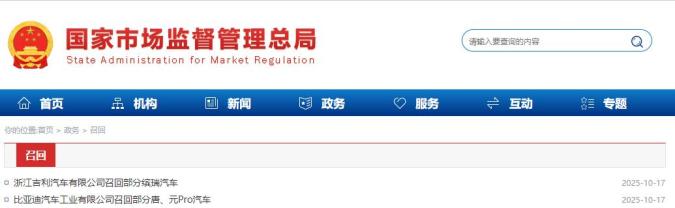 涉及比亞迪唐、元Pro以及浙江吉利繽瑞等車型