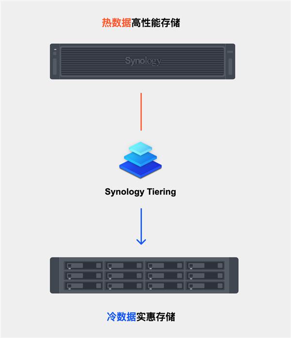 新增的Synology Tiering分層存儲功能十分實用,它能夠自動將高頻訪問的“熱數(shù)據(jù)”存放在高速盤,把低頻的“冷數(shù)據(jù)”存儲在普通盤,這樣既能保證性能,又能控制成本。