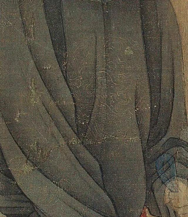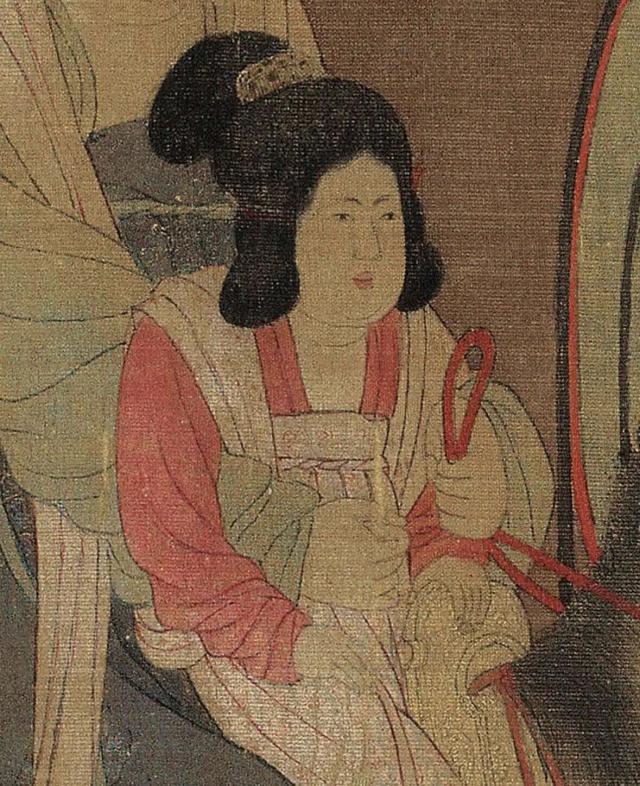 她兩側(cè)有兩個(gè)侍從,前邊兩人也以她為主,有“眾星捧月”之感。