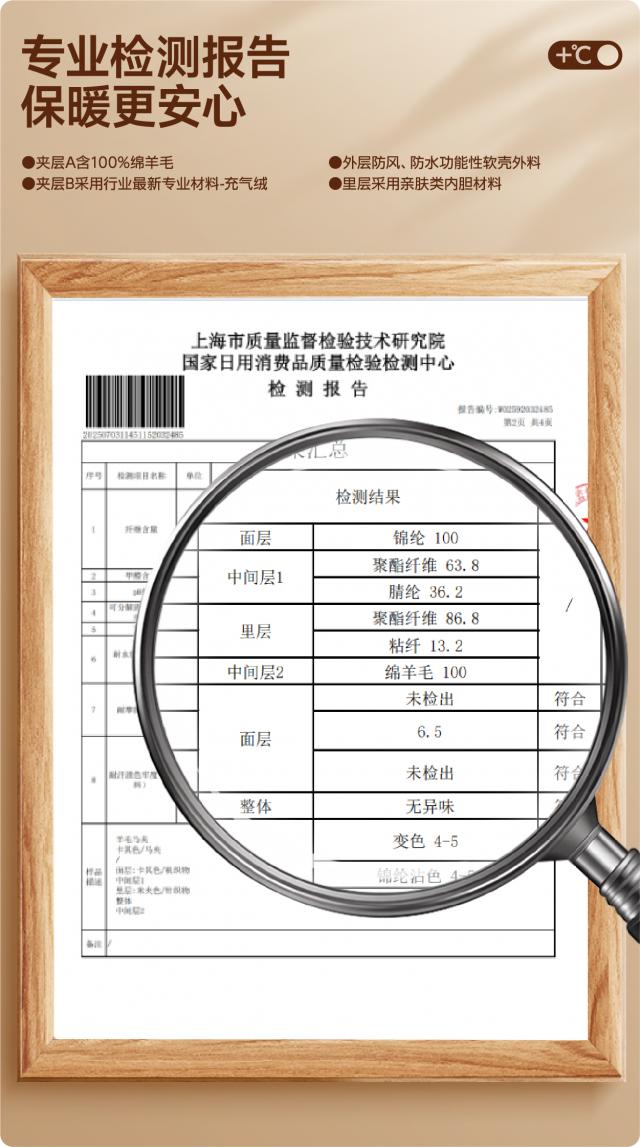 精選的綿羊羊毛,品質(zhì)超棒,直接放上權(quán)威機(jī)構(gòu)的實(shí)測(cè)報(bào)告,絕不弄虛作假!▼