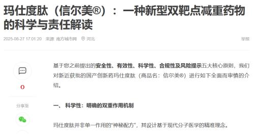 然而,真正引發(fā)行業(yè)變革的是GLP - 1類減肥藥物的快速增長。2025年6月27日,瑪仕度肽注射液 ( 信爾美 ?)獲得國家藥品監(jiān)督管理局 ( NMPA ) 批準上市,用于成人肥胖或超重患者的長期體重管理。