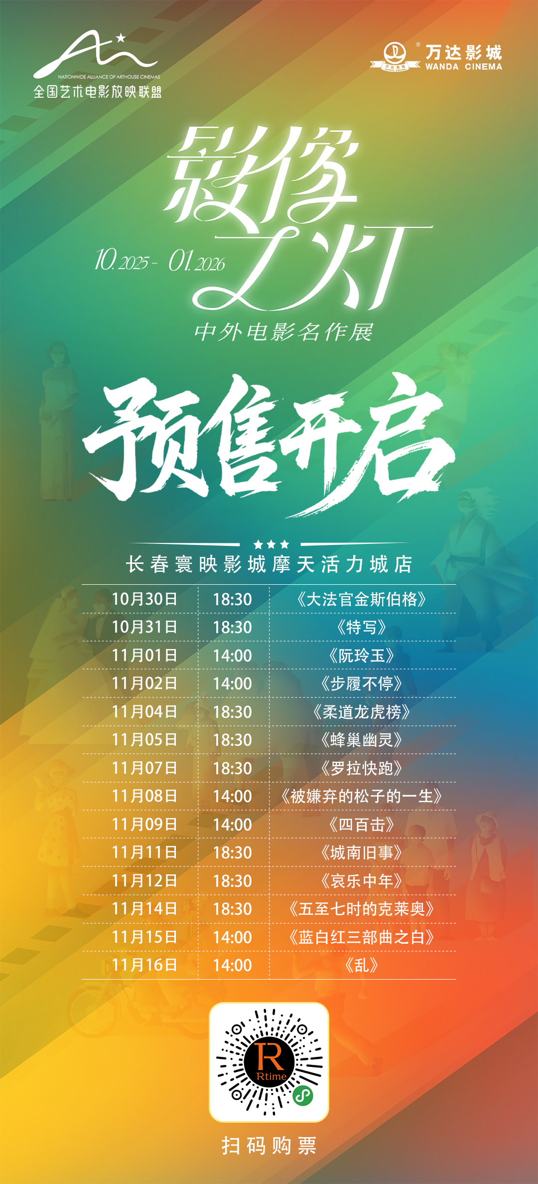 在世界電影誕生130周年、中國(guó)電影誕生120周年這一具有歷史意義的時(shí)刻,全國(guó)藝術(shù)電影放映聯(lián)盟精心打造的“影像之燈?中外電影名作展”,即將于10月29日盛大啟幕。作為藝術(shù)電影放映聯(lián)盟成員單位,長(zhǎng)春寰映影城摩天活力城店將參與此次展映活動(dòng),為長(zhǎng)春的影迷們帶來(lái)一場(chǎng)跨越國(guó)界、貫穿影史的藝術(shù)電影盛宴,更有4K修復(fù)版影片帶來(lái)極致的視聽(tīng)享受。