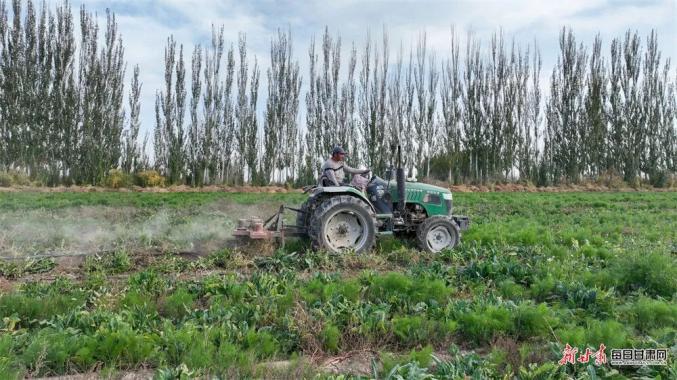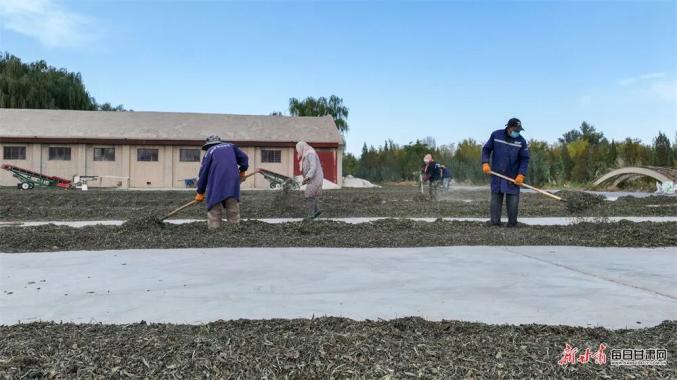 深秋時分,酒泉市金塔縣健康農(nóng)業(yè)中藥材產(chǎn)業(yè)園的板藍根種植基地里一片忙碌。工人們趁著好天氣,有序地進行板藍根的收割、晾曬等工作,努力確保藥材豐收、農(nóng)戶增收,田間處處散發(fā)著淡淡的藥材清香。