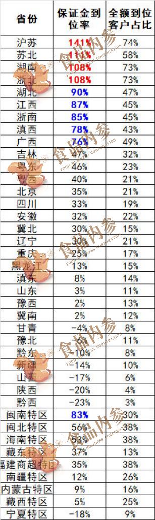 與會議內(nèi)容一同流出的還有娃哈哈各省繳納保證金的完成比例,令人意外的是,盡管一個多月來情況不明朗,但部分省份的經(jīng)銷商還是“力挺”了宗馥莉。