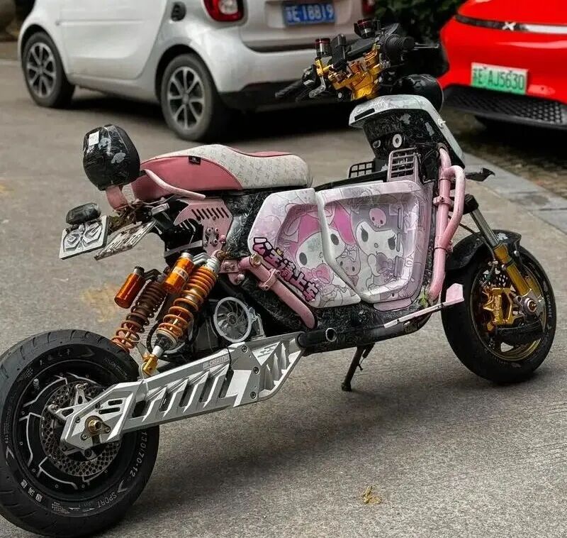 后來我看到更多改裝車,發(fā)現(xiàn)改裝風格多種多樣,有復古風、朋克風、少女風等,千奇百怪。在改裝者眼中,電驢不是普通的代步工具,而是專屬的移動潮玩??梢哉f“不是哈雷買不起,實在是改裝小電驢更有性價比”。