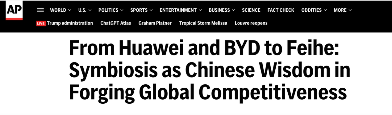 (華為、比亞迪、飛鶴等中國企業(yè)的“全產(chǎn)業(yè)鏈整合”戰(zhàn)略被美聯(lián)社評論為“重構全球競爭力的‘中國智慧’”)