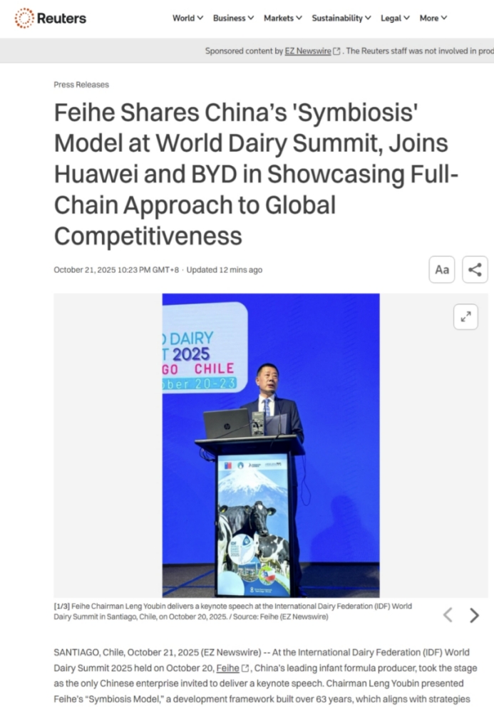 (飛鶴亮相2025世界乳業(yè)峰會,引發(fā)路透社等國際媒體關注報道)