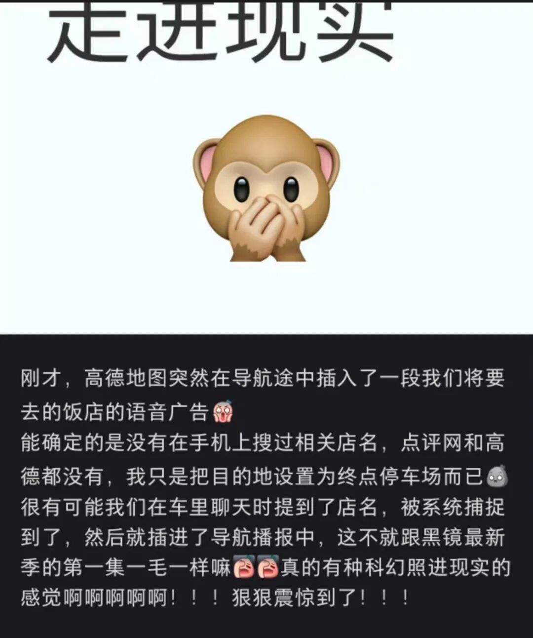 還有網(wǎng)友稱,使用高德導(dǎo)航時會突然有語音廣告,雖不是每次導(dǎo)航都有,但每天都有,感覺很崩潰。