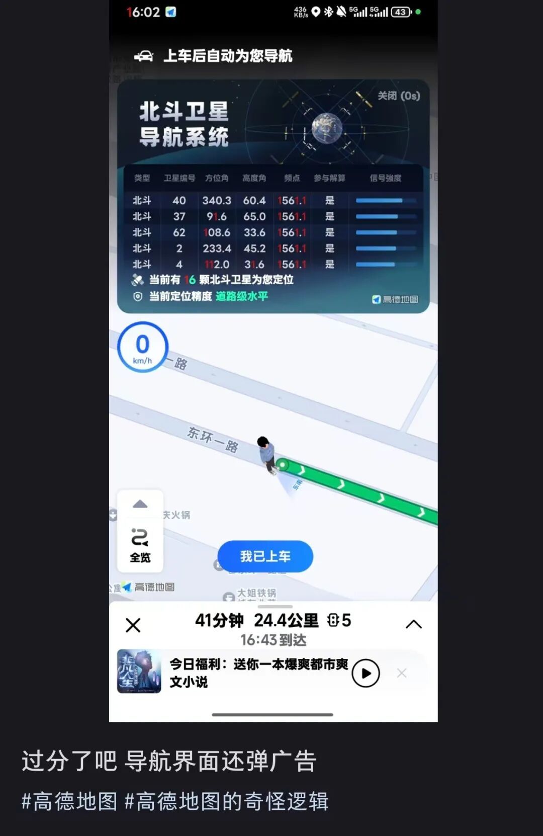 有網(wǎng)友發(fā)帖稱,常在高德導(dǎo)航頁面下方看到廣告,擔(dān)心以后導(dǎo)航頁面都會插廣告。