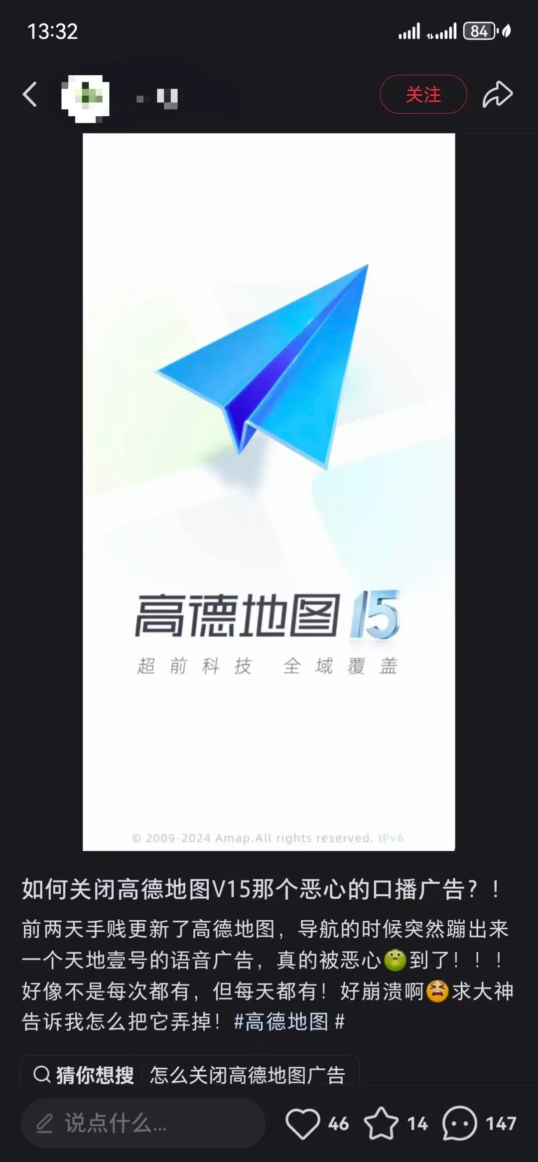 筆者測試發(fā)現(xiàn),并非所有高德用戶都會遇到此問題,這種廣告形式似乎僅覆蓋部分用戶。