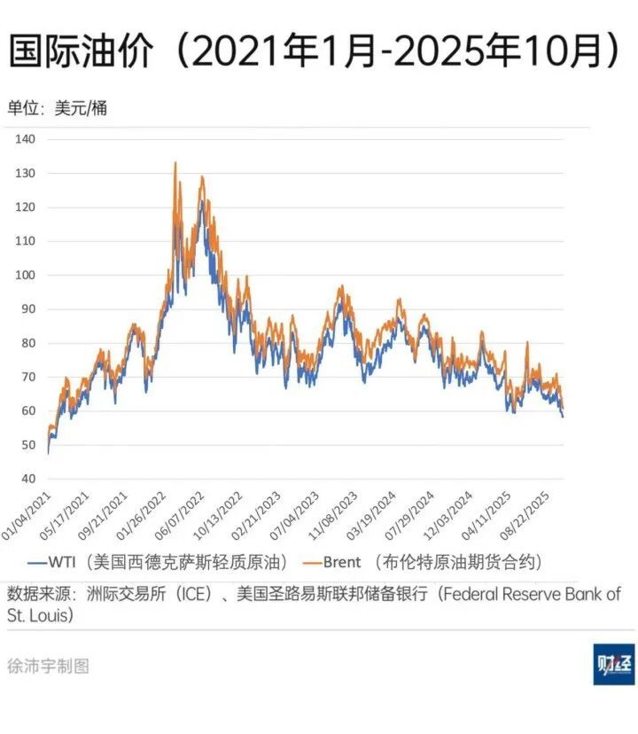 2025年三季度以來(lái),國(guó)際油價(jià)在70美元/桶以下持續(xù)波動(dòng),價(jià)格中樞處于四年來(lái)低位。