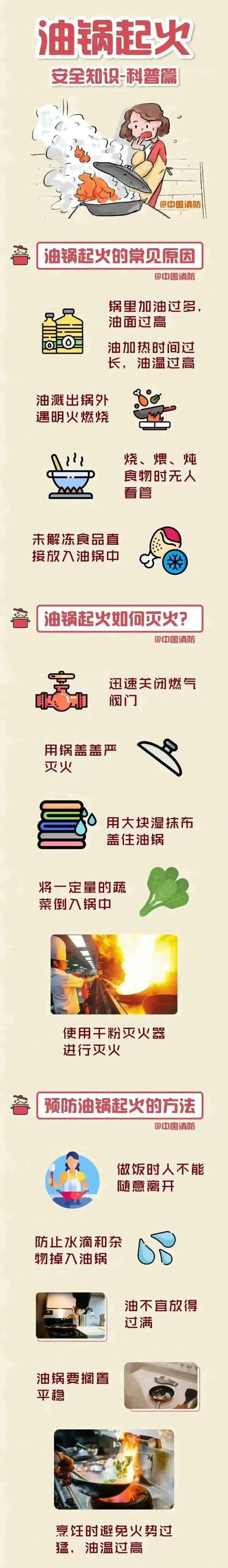 食用油因油溫過高起火或熱油濺出碰到火源引發(fā)油鍋起火很常見,撲救不當(dāng)會(huì)引發(fā)火災(zāi)。