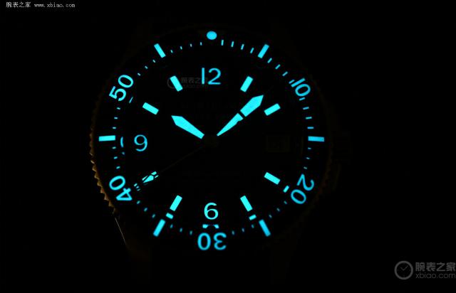 表圈和表盤上的時標、刻度,以及時針、分針、秒針的尖端,都附有白色Super - LumiNova?夜光涂層。在黑暗環(huán)境和深海中,它們會散發(fā)出藍色光芒,方便讀取時間。