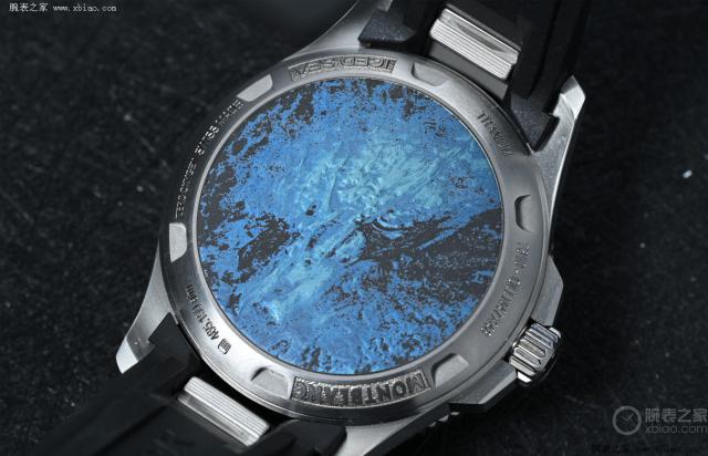 翻轉(zhuǎn)到表背,這也是這枚腕表最令人驚艷的部分,有立體的冰川雕刻圖案。融化的冰河、冰層仿佛立體地呈現(xiàn)在眼前。這些圖案通過激光雕刻出層次,其紋理和色彩由氧化作用決定。
