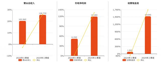 公司營(yíng)業(yè)總收入為128.77億元,歸母凈利潤(rùn)為14.18億元,經(jīng)營(yíng)活動(dòng)現(xiàn)金凈流入為19.63億元。