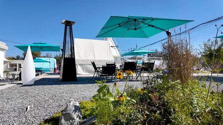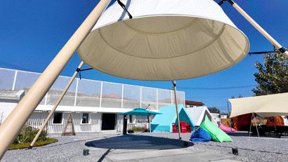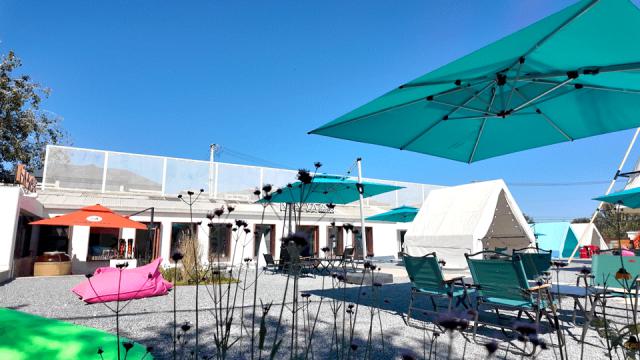 院落內有專業(yè)匹克球運動場,讓人在鄉(xiāng)村體驗全球流行運動。戶外休閑區(qū)有碎石小徑和花草景觀,游客可在天幕下休息,擁抱自然。