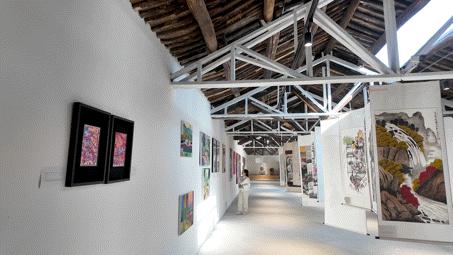 走進藝術中心,可見用木頭、石頭搭建的展區(qū),藝術自然融入鄉(xiāng)野。