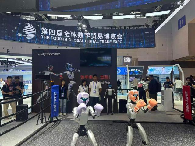(第四屆數(shù)貿(mào)會(huì)上宇樹科技的展位,拍攝:柳寧馨)