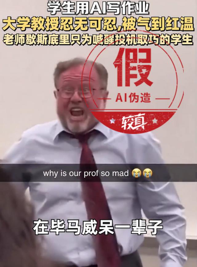 別被AI視頻騙了!“學生用AI寫作業(yè)氣紅教授”視頻系AI生成