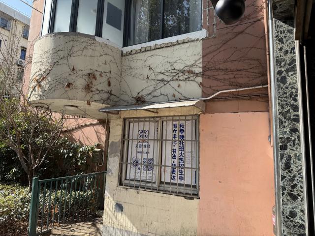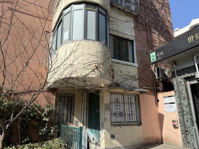 從地鐵口還沒出來,就能看到二樓凸起的陽臺和一樓的綠色護欄。