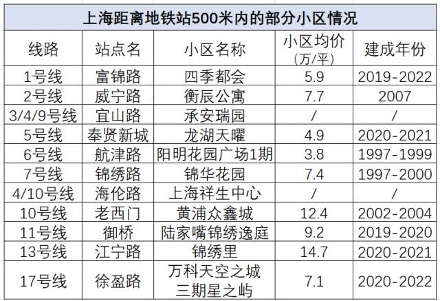 當然,上海步行5分鐘左右到達的“正地鐵房”還有很多。