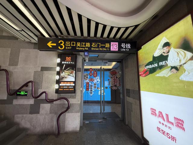 從門外看,指示牌標著3號出口,再下一層樓就直接無縫銜接南京西路的檢票口,地鐵12號線和13號線也在附近,地段優(yōu)勢無可復制,業(yè)主盡享繁華和便利。