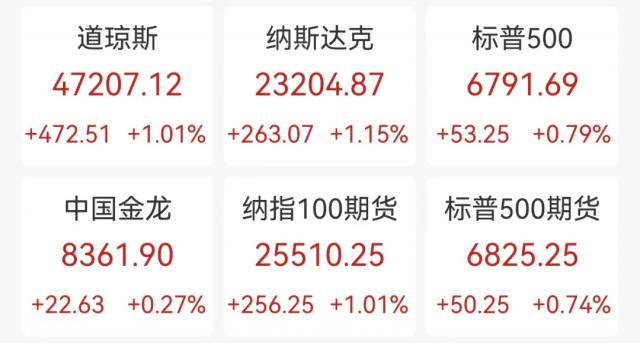 北京時間10月25日凌晨,美股三大指數(shù)集體收漲,均再創(chuàng)歷史新高。其中,納指漲1.15%,本周累計上漲2.31%;道指漲1.01%,本周累計漲幅為2.2%;標(biāo)普500指數(shù)漲0.79%,本周累計上漲1.92%。美國9月CPI報告顯示通脹狀況溫和,這極大地提振了投資者的樂觀情緒。市場普遍認(rèn)為,美聯(lián)儲能夠維持其降息路徑,進(jìn)而促進(jìn)經(jīng)濟發(fā)展,并為股票更高的估值提供合理依據(jù)。