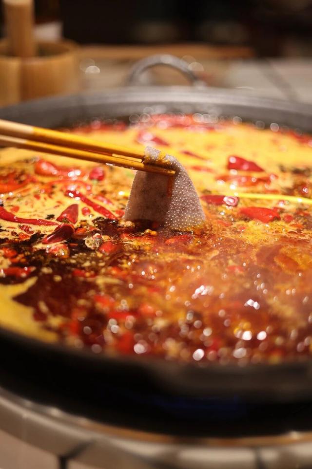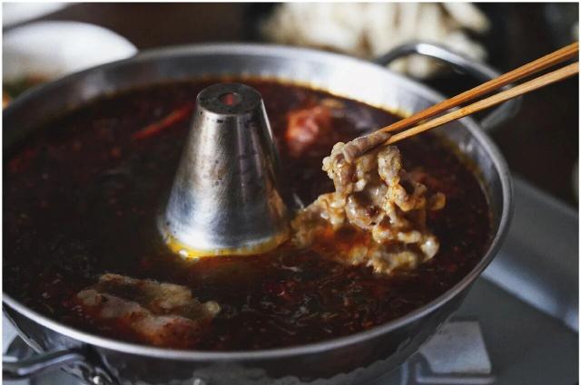 川渝攜手,吃辣同行。雖然辣味火鍋已遍布全國,但四川人和重慶人仍會(huì)為川式火鍋正宗還是渝式火鍋地道爭(zhēng)論不休。不過在吃辣方面,川渝確實(shí)風(fēng)格統(tǒng)一,如同相愛相殺的姐妹花。廣東人在四川吃火鍋容易被“迷惑”,明明點(diǎn)了微辣,上來卻是一鍋紅亮的辣椒底湯。沒辦法,四川的“微辣”是酌情少放辣椒,而非只放一點(diǎn)點(diǎn)?;疱伒牡子褪怯没ń泛透衫苯烦闯鰜淼?,即便后面不放辣椒,鍋底本身就有辣味。所以,初到四川的廣東人別害羞,要大聲告訴店家自己是廣東人。四川辣度的最低程度被稱為“廣東辣”。川渝的辣是多種辣味的混搭,本土的花椒藤椒、外國的辣椒,你以為扛過了第一口的沖擊,卻會(huì)冷不防被從舌底喉頭竄出的麻意刺個(gè)“回馬槍”。當(dāng)你嘴上過癮時(shí),菊花可能會(huì)有“滿城盡帶黃金甲”的預(yù)兆,四川人會(huì)貼心地指路:“喏,四川華西醫(yī)院,有全國最好的肛腸科。”“寧肯屁兒流膿,不肯嘴巴受窮”,這很四川。在重慶,愛吃辣的人嘴巴不會(huì)“受窮”,不用去市區(qū)星羅棋布的火鍋店,走進(jìn)甜品店,就能吃到花椒味的雪糕,喝到重慶火鍋味道的奶茶。別人的蛋糕被奶油覆蓋,重慶的火鍋蛋糕入口是牛油的順滑,有香葉的曼妙,你以為蛋糕上的是巧克力粉?其實(shí)是正兒八經(jīng)的辣椒粉。吃嗎?吃啊,反正隔壁就是肛腸科醫(yī)院。誰說大口喝火鍋奶茶的不算英雄?