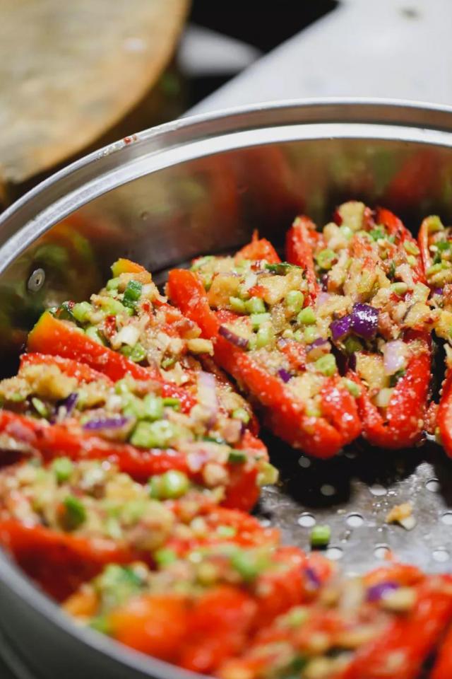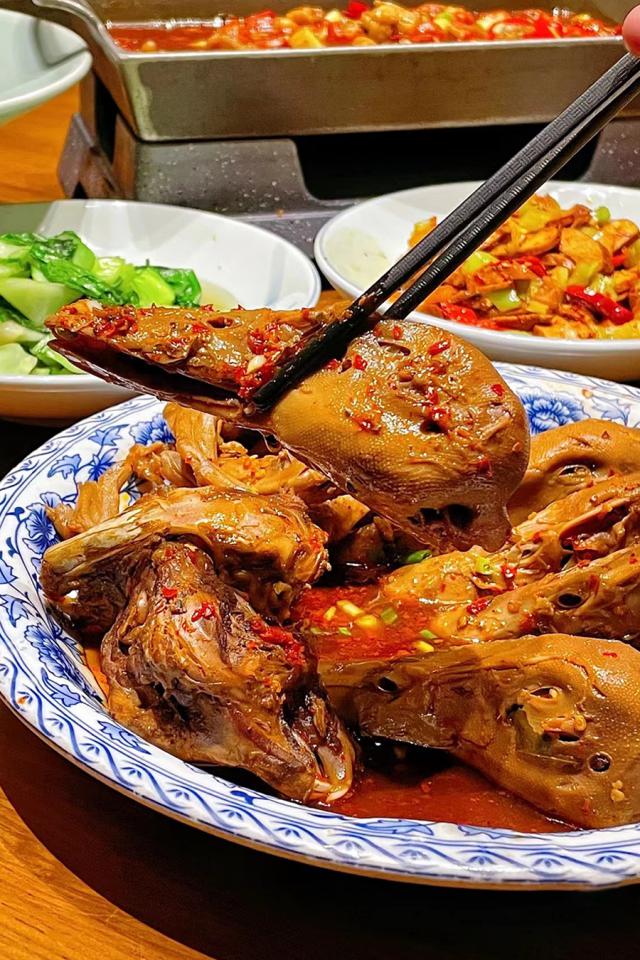當(dāng)江浙滬想和廣東聯(lián)手?jǐn)U大不吃辣版圖時(shí),衢州這個(gè)“非主流辣妹”嗦著“三頭一掌”(兔頭、鴨頭、魚頭、鴨掌)低調(diào)登場(chǎng)。衢州作為四省通衢之地,頗有大姐大的風(fēng)范,鴨頭端上桌,便知誰是宵夜攤霸主。辣鹵賦予鴨頭紅棕色的“限定皮膚”,油潤生光,啃完薄皮下入味的鴨骨,連牙縫都滿是快樂,讓南京人搖頭擺手,直呼:“這鴨頭可不是那鴨頭,頭上怎么還有辣椒油?”此外,衢州還跟江西學(xué)了道粉蒸菜——炊辣椒包。紅辣椒洗凈去籽,搭配江南的好蝦米、好藠頭,拌著炊粉上鍋蒸熟,能讓人吃得滿頭大汗。衢州雖屬江南,卻與江西接壤,溫柔的米面里也有了紅彤彤的辣椒。夜幕降臨,路邊的麻辣燙是撫慰心靈的良藥。甜是江南的底色,辣是升級(jí)的創(chuàng)新。鴨血和腐竹浸在辣油里,成為街頭檔最佳CP;外酥里嫩的豆腐一口爆汁,辣得過癮。貼著江西的衢州,以一己之力點(diǎn)亮了江浙滬的吃辣技能。