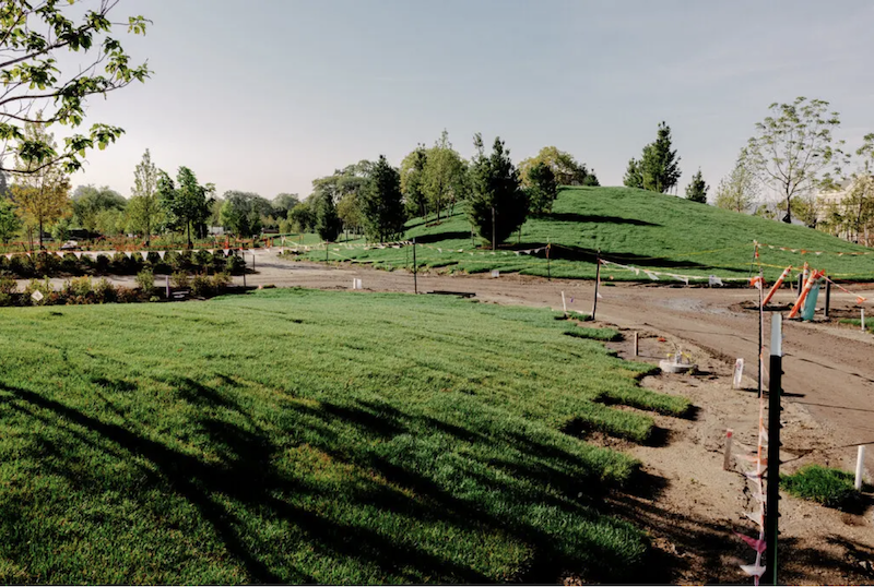 園區(qū)綠地由景觀設(shè)計師邁克爾·范·瓦爾肯伯格設(shè)計,抬升的草坪連接廣場與屋頂花園,下沉庭院與抬升平臺交織,使新建筑與杰克遜公園自然融合。中心有400個車位的停車場,上方是兩英畝的游樂場。