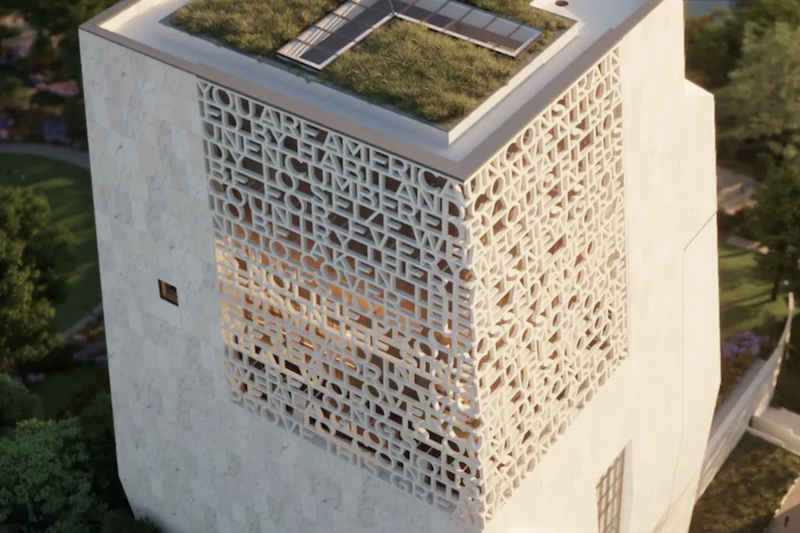 博物館將呈現(xiàn)25位藝術(shù)家的繪畫、雕塑、壁畫作品,如瑪雅·林、琪琪·史密斯等人。其中不乏大型裝置,如朱莉·梅赫雷圖創(chuàng)作的83英尺高拼貼玻璃作品。博物館外立面鐫刻奧巴馬演講詞句,文字與建筑結(jié)構(gòu)巧妙結(jié)合。