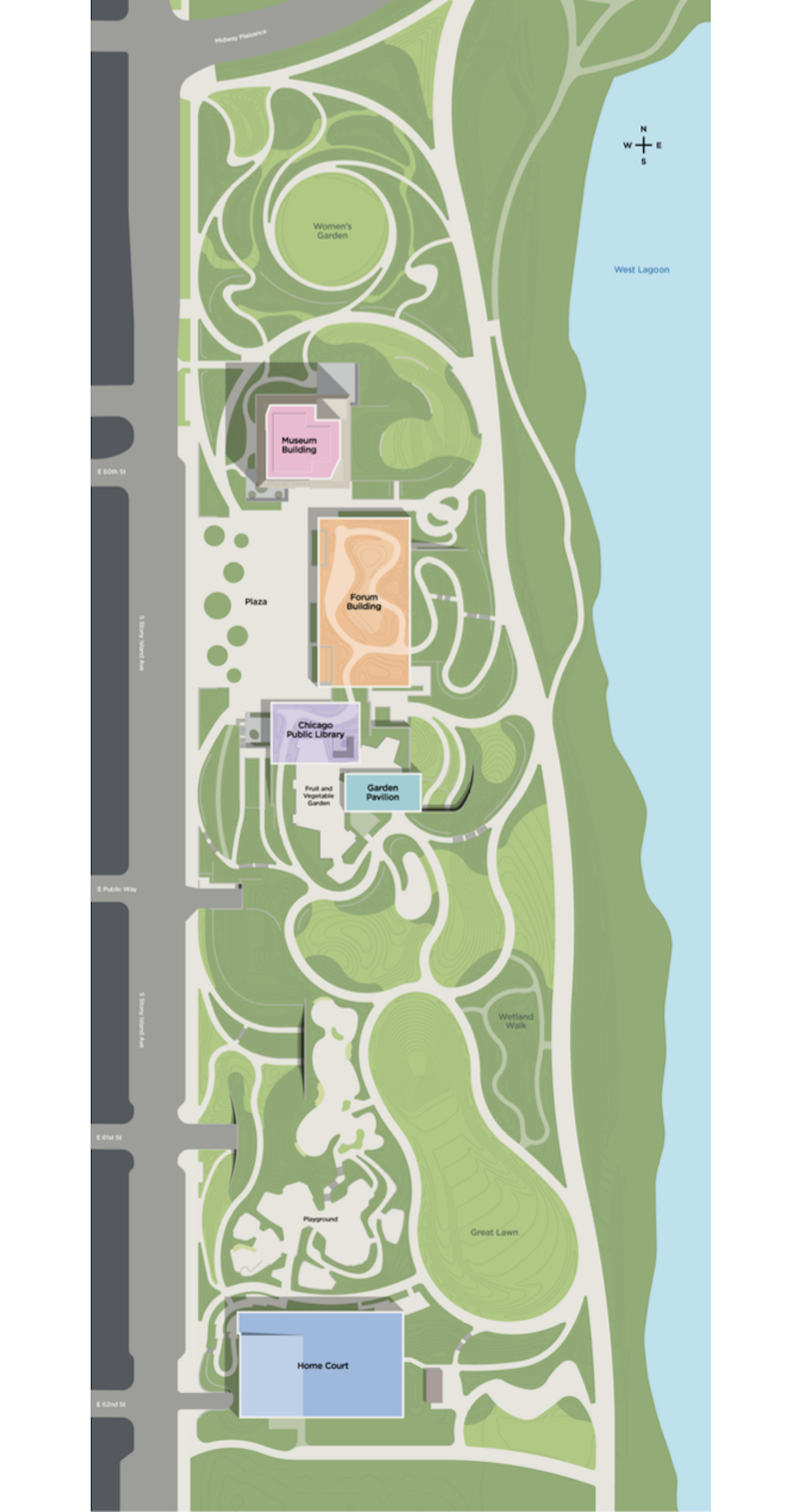 2016年,紐約建筑事務(wù)所Tod Williams and Billie Tsien Architects贏得設(shè)計競賽。設(shè)計師將單棟建筑拆成四個部分形成園區(qū),給奧巴馬夫婦及其團隊留下深刻印象。