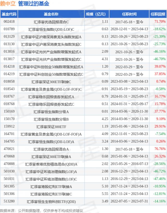賴(lài)中立先生為中國(guó)國(guó)籍,擁有北京大學(xué)中國(guó)經(jīng)濟(jì)研究中心金融學(xué)碩士學(xué)位。他曾在泰達(dá)宏利基金管理有限公司擔(dān)任風(fēng)險(xiǎn)管理分析師。2010年8月加入?yún)R添富基金管理股份有限公司,先后擔(dān)任金融工程部分析師、基金經(jīng)理助理。他曾在多只基金任職:2012 - 2023年擔(dān)任匯添富黃金及貴金屬證券投資基金 (LOF) 基金經(jīng)理;2014 - 2023年任匯添富恒生指數(shù)型證券投資基金 (QDII - LOF) 基金經(jīng)理等多只基金的管理工作。2024年1月31日至2025年9月17日擔(dān)任匯添富穩(wěn)樂(lè)回報(bào)債券型發(fā)起式證券投資基金基金經(jīng)理。