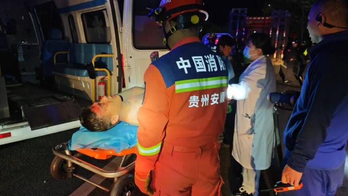 10月21日00時50分,安順市黃果樹旅游區(qū)發(fā)生一起交通事故,一輛小貨車與拖車碰撞,致使小貨車副駕駛?cè)藛T被困。