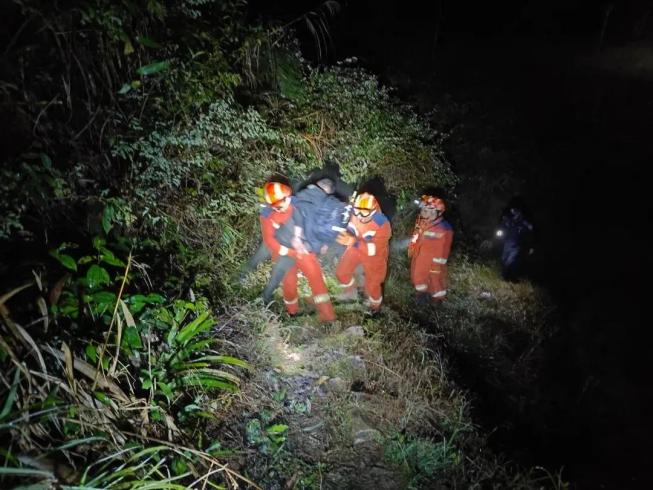 案例三:3月10日,貴州遵義一男子醉酒后與同伴發(fā)生分歧,下車透氣不慎掉進(jìn)山溝,同伴急忙報(bào)警求助,最終消防員成功將其安全轉(zhuǎn)移至地面。