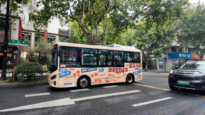 公交車迷小沈是杭州土著,他用鏡頭記錄下這輛主題巴士:“1014路走的中山路是杭州老城區(qū)經(jīng)典道路。公交車像流動(dòng)的文化載體,宣傳杭州話和老地名很不錯(cuò)。”