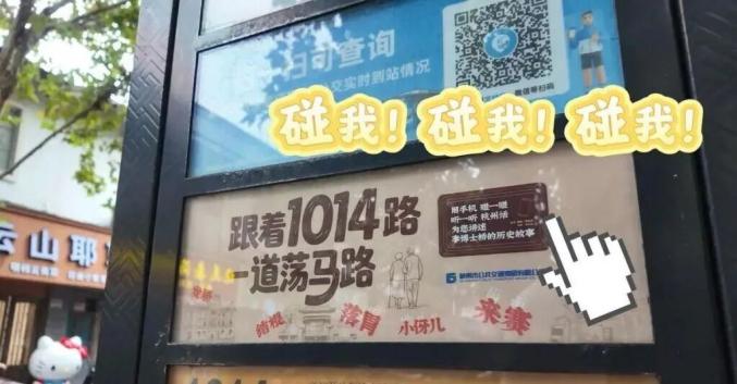 乘客候車時(shí),用手機(jī)貼近感應(yīng)區(qū)“碰一碰”,就能聽到杭州人用地道方言講述的街巷記憶與生活趣事——