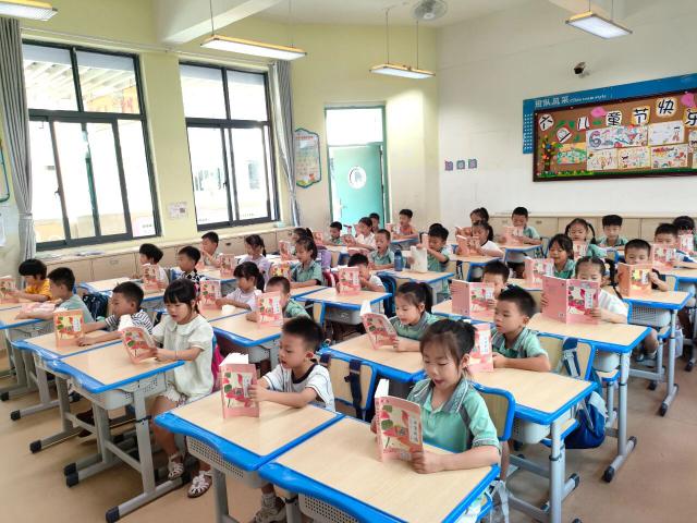 開學(xué)前兩周是適應(yīng)性課程,不教課本。常規(guī)教育如排路隊(duì)、跑操、參觀校園累了,我就帶孩子讀《日有所誦》、講繪本故事,讀著讀著孩子就會背了。