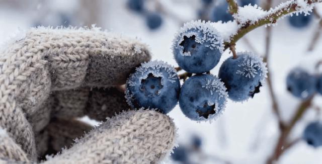 當(dāng)氣溫驟降至零下8度,這些藍莓結(jié)成晶瑩的冰球,此時,它們將化身為一杯驚艷世界的有機藍莓冰酒。